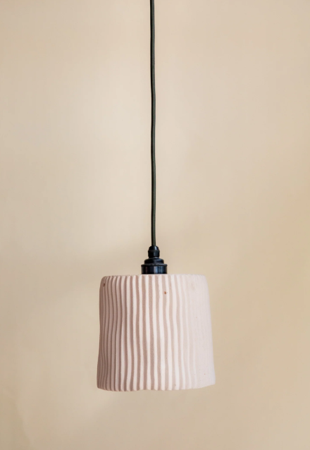 The Large Wavy Pendant features a fine scalloped design that creates soft ambient shadows that elevate your space. Suspended by a cord, with an artisanal organic feel, this pendant is a charming addition to any setting.